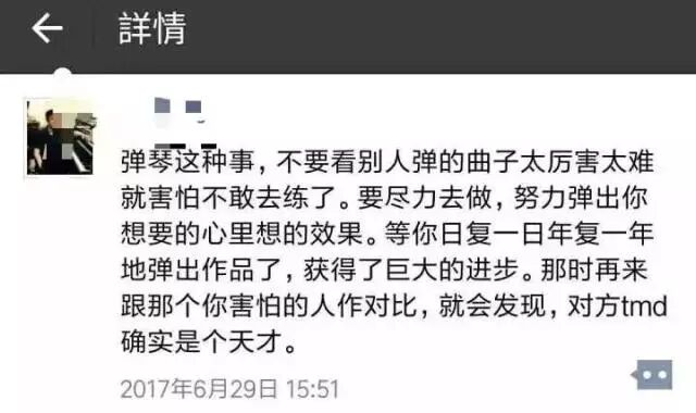 这些在音乐学习的过程中遇到的大大小小的问题其实比多数人想象中的要难很多,很多音乐专业的同学拼了命就为了突破一个瓶颈,然而在突破这层瓶颈之后看到的只有更远更高更难达到的顶峰,其实从99到99.1都比从1到99要难。伴随着进步越来越会觉得,有的人的境界,自己真的是一辈子都达不到,并不是自暴自弃的想法,只是事实。事实摆在眼前,也无法像小时候赌气一样地再有:"我偏要达到这个境界"这样的想法了。努力还是继续努力,拼命还是继续拼命。只不过最大的坎坷: 无奈这两个字,可能会伴随一辈子吧。纵使自己并不差,但每个人都是要向前看的。