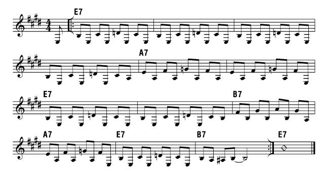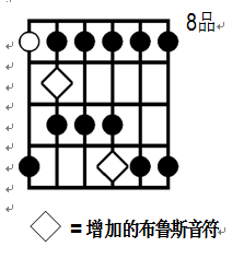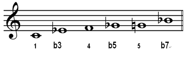 第二章第9集弹奏布鲁斯 我们都有偶像,模仿自己的偶像的同时,还需要有自己的风格。” ~ B.B. King (BB金-伟大的布鲁斯吉他大师) 什么是布鲁斯音阶?布鲁斯音阶起源于大调音阶,当中增加了一些音符,还有一些音符做了调整。在布鲁斯音阶中增加了降3度和降5度音符,把7度音降低半音变成降7。降3、降5、降7被称为布鲁斯音符。↑C 大调音阶↑C 布鲁斯音阶C 小调五声音阶C 小调五声音阶包含2个布鲁斯音符,所以,只要弹奏小调五声音阶就很容易产生布鲁斯味道了。如果你要弹降5这个布鲁斯音符,只需在小调五声音阶的指型中增加这个音符即可。包含降5音的C 小调五声音阶↑如果你要弹降5这个布鲁斯音符,只需在小调五声音阶的指型中增加这个音符即可。↑增加了布鲁斯音符的五声音阶指型1包含布鲁斯音符的五声音阶指型布鲁斯和弦进行布鲁斯和弦进行包含12个小节,并且有其固定的和弦组合。 以下的和弦进行用罗马数字来表示。C调布鲁斯和弦进行或者C 布鲁斯三和弦三和弦就是3个音符组合在一起弹奏,一个三和弦由大调音阶的1、3、5度音组成。按照不同三和弦的定义,有些音符需要升高或者降低。以下是4种主要的三和弦种类,它们是:大三和弦(MAJOR)、 小三和弦( MINOR)、增三和弦( AUGMENTED)、减三和弦(DIMINISHED)。以下表格显示了三和弦的种类和构成规则。 三和弦种类和弦构成规则 大三和弦1- 3- 5 小三和弦1- b3- 5 增三和弦1- 3- #5 减三和弦1- b3- b5 C调三和弦举例1) C 大三和弦由C大调音阶的1、3、5级音构成,所以 C Major 构成音是 C、 E、G. 2) C 小三和弦t同样由C大调音阶的1、3、5级音构成,但是我们必须把3度音降低半音,所以 C Minor 构成音是C、 Eb、 G. 3) C 增三和弦(C Augmented)我们须要把5度音升高半音,所以 C Augmented 构成音是 C、 E、 G# 4) C减三和弦(C Diminished) 我们须要把3度音和5度音都降低半音,所以 C Diminished 构成音是C、 Eb、 Gb. 作业练习所有的包含布鲁斯音符的五声音阶,用不同的调在整个指板弹奏。 • 记忆布鲁斯和弦进行。 • 记忆四种三和弦 • 跟着伴奏CD弹奏 C Jam Blues 、Johnny's E Blues。练习弹奏和弦,运用包含布鲁斯音符的五声音阶弹Solo C Jam BluesC 调即兴布鲁斯↑摇摆爵士Johnny's E Blues约翰尼的E调布鲁斯↑使用包含布鲁斯音符的E小调五声音阶弹Solo 相关视频民谣吉他教程第二章9集视频点击边框编辑视频粉丝点击吉他学习菜单查看古典吉他、指弹吉他、乐理、资料吉他艺术粉丝点击吉他赏析菜单查看演奏、赏析、历史、名家、曲谱吉他艺术粉丝点击微店曲谱专栏菜单查看微店曲谱试听吉他艺术吉他艺术交流吉他视频吉他曲谱吉他资料线下聚会一号打尽长按识别二维码关注吉他艺术交流点击下方“阅读原文”直达微店首页