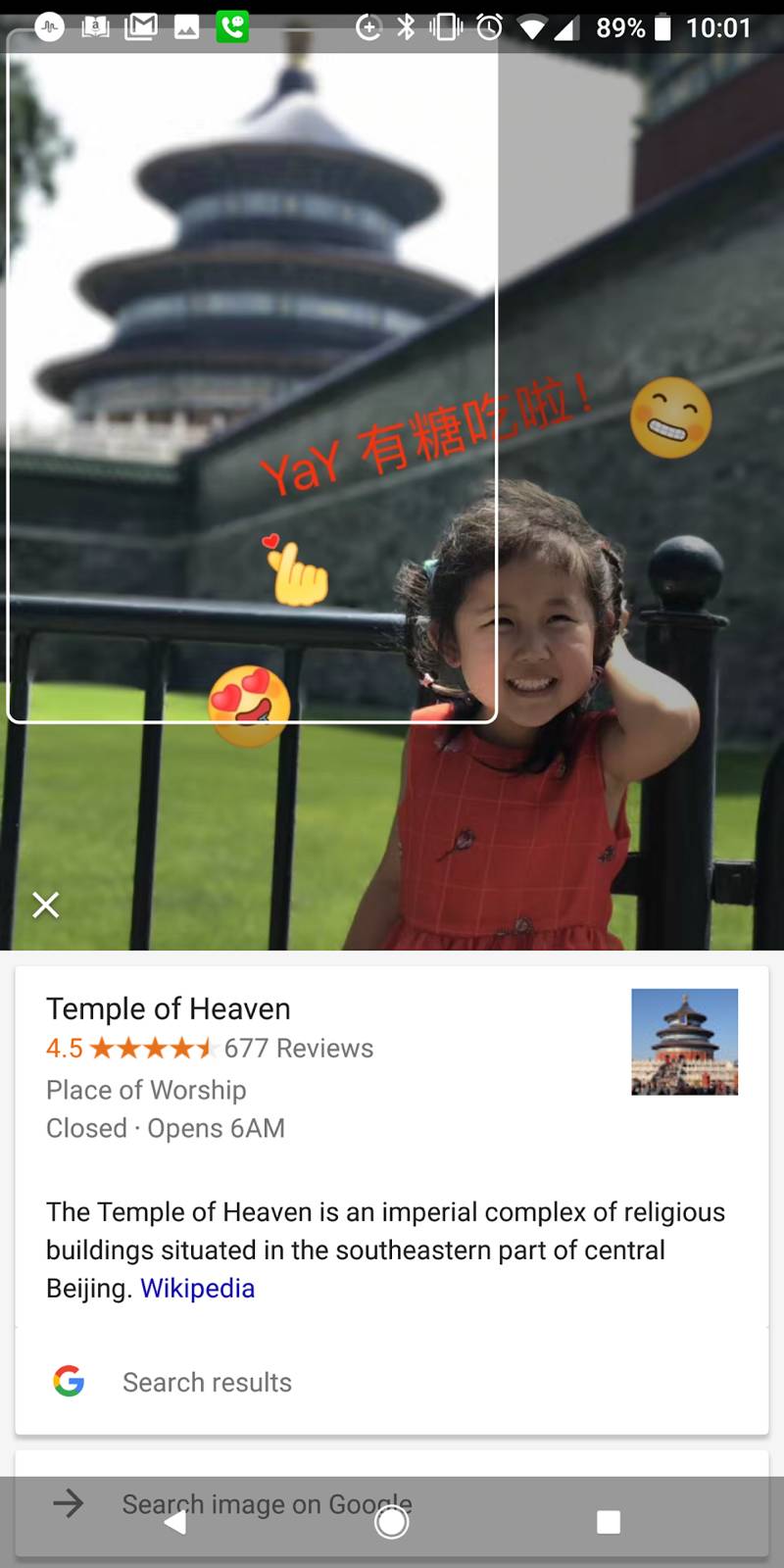 2XL 另外一个黑科技是 google lens。在 google photos 里随便打开一张照片,就可以用 google lens 分析图片。使用强大的深度学习引擎,google lens 可以准确地告诉你地标性建筑,动植物等等。咱们看图说话:
