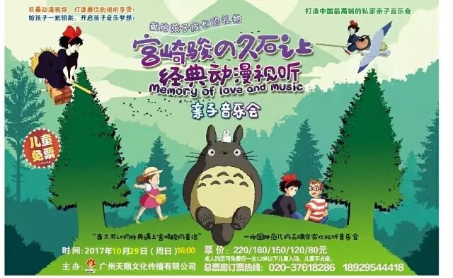 《天空之城》、《千与千寻》、《龙猫》、《哈尔的移动城堡》、《幽灵公主》……一个个经典的动漫形象,一曲曲熟悉的美妙音乐,承载着一段段童年的美好憧憬和回忆,也在无数个夜晚伴着我们进入甜蜜梦境。 当熟悉的旋律再次响起之时,是否会勾起你记忆里那一份纯真、一份童年情结呢?