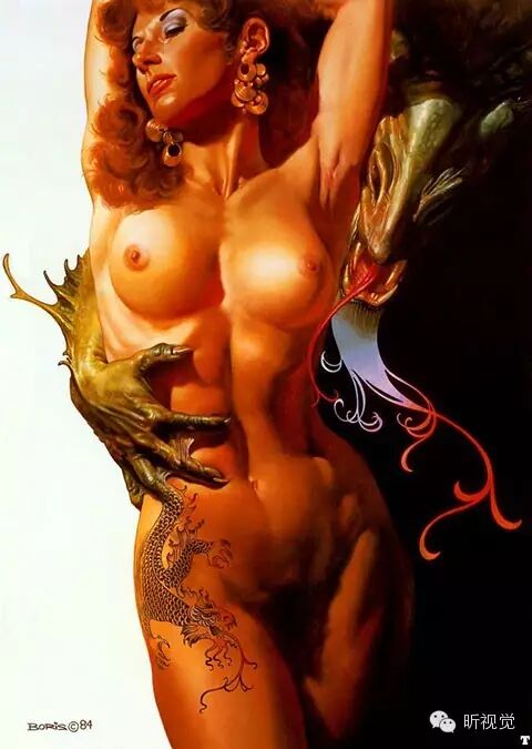 受到弗雷泽塔(Frazetta)完美化的健美男性和妖娆女性的启发,鲍里斯吸收了古典派技术,经过磨练,发展成一种迥然不同的他自己的风格。鲍里斯十六岁时就尝试了人体绘画,幻想艺术提供了绝好地空间,使他把激情与对完美人体的崇拜结合在绘画中。