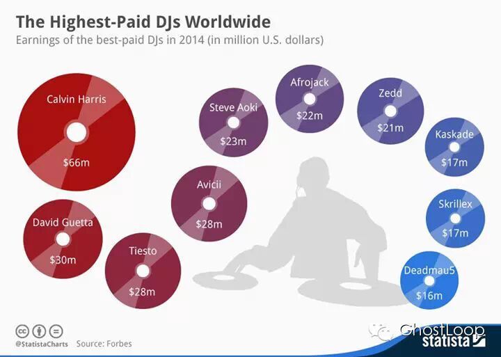 暴增的產值,理論上代表業內人士收入增加。今年福布斯公布的音樂人收入排行,除了有更多人進榜,榜首Calvin Harris的收入更成長了將近1/2。去年還有人質疑頂級DJ的收入與EDM熱潮不相稱,今年這種質疑則完全消失。