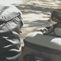 哈哈,看到这样萌翻了,戴着头盔穿着衣服,带着墨镜,要不要这么酷。
