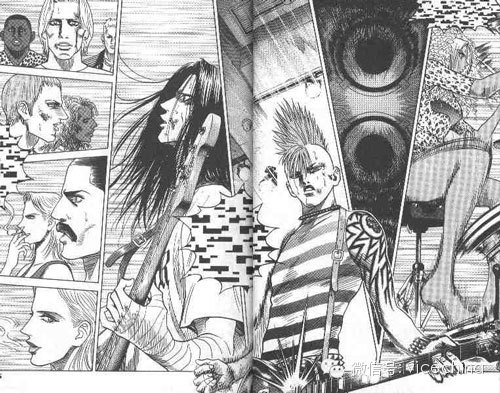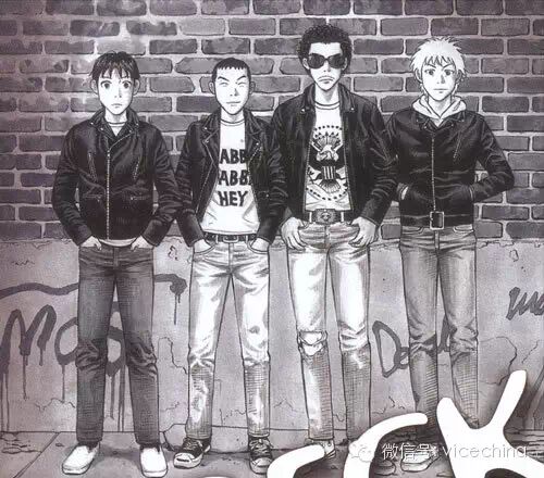 我第一次在漫画中见到 Vans 鞋、Vivienne Westwood 为 Sex Pistols 乐队设计的英女王鼻子穿别针的 Tee、还有 Mohawk 发型和各种柳钉皮带。毕竟梅泽春人始终习惯走热血乱斗路线,所以漫画中乐队身份仅仅是点缀,更多篇幅还是留给了乐队成员与别的乐队或者不良少年们的拳脚相加。记得那会儿,有不少广州 Band 友爱模仿这风格,表现摇滚的态度。