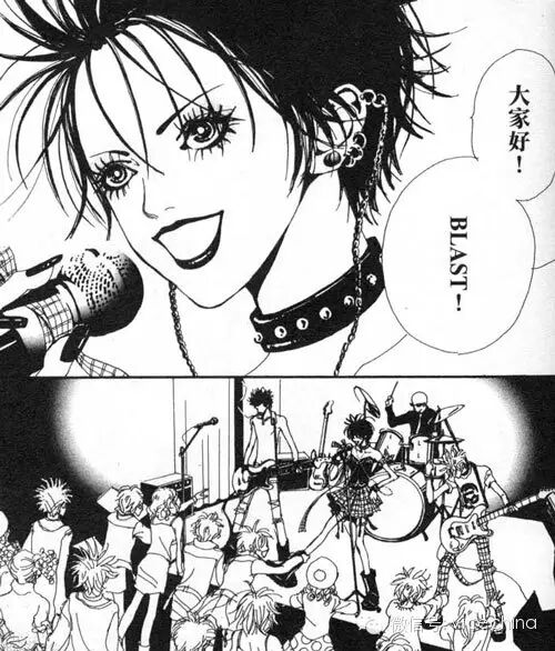 ”朋克都是娘娘腔“ 这句话,在《NANA》中得到了最大的诠释。御大阪模特学校出身的矢泽爱对服装的审美一直有着牛逼的品味,Punk 一词在通过非摇滚乐途径传播给年轻人的时候,很大程度上是《NANA》的功劳。