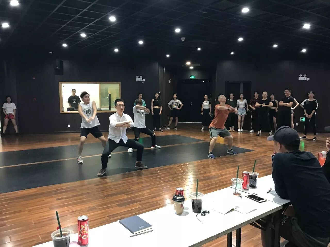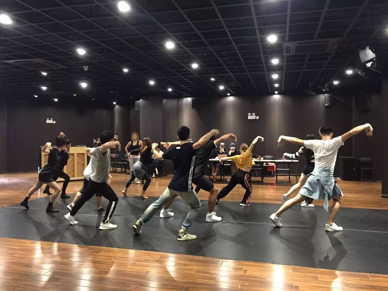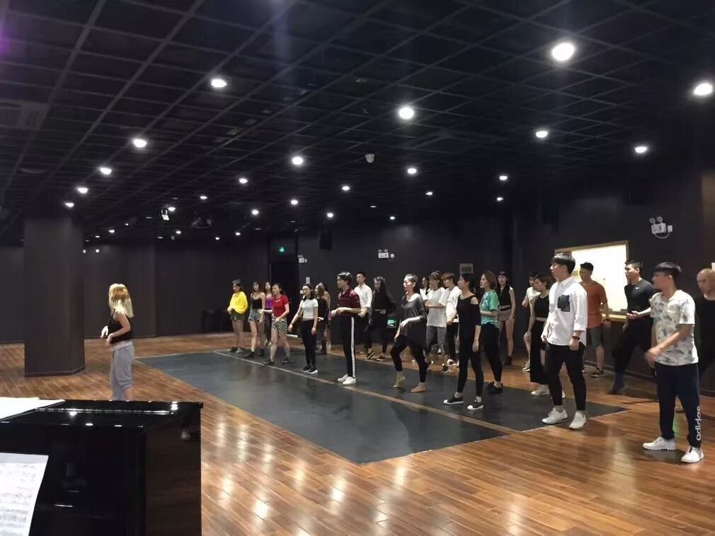 下午的演员集体学习舞蹈中。。