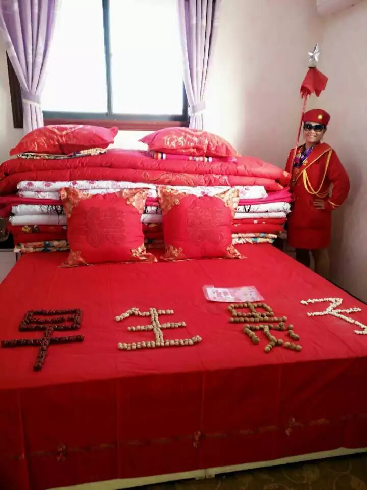 娶亲的任务完成了,闲暇之余,大姐们也来沾沾喜气,在新娘子的新房里拍几张美美的照片。