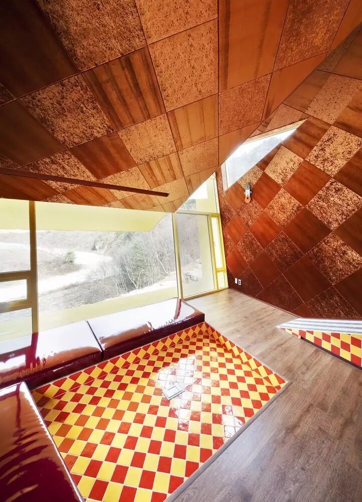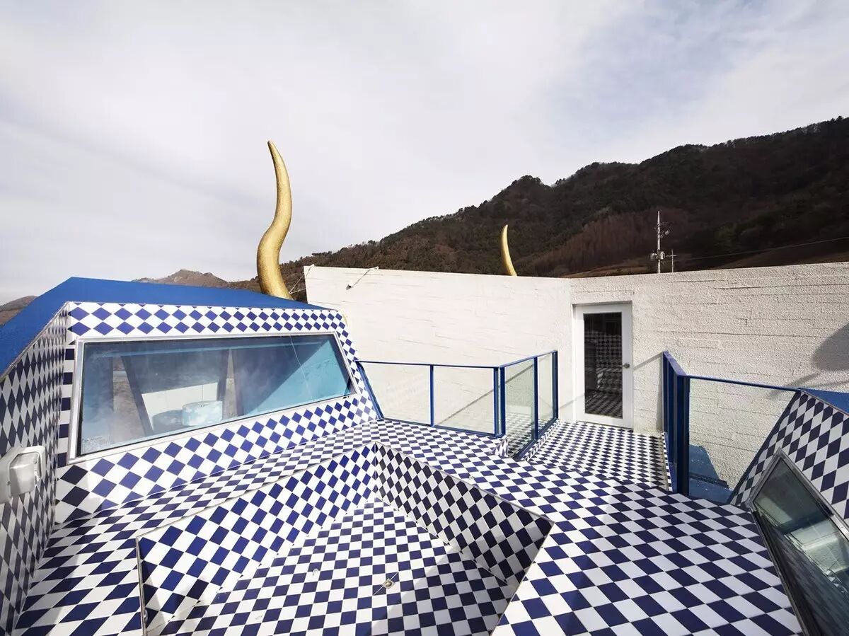为什么要这样设计呢?因为在韩国,周末是用来幻想和逃脱现实的时间,这样一个古怪的房子,必定能将人从枯燥无味的日常生活中暂时隔离出来,在这里好好的疯上一个周末。