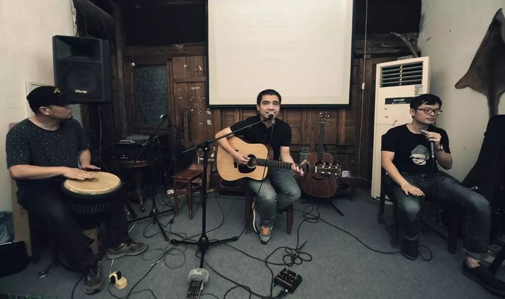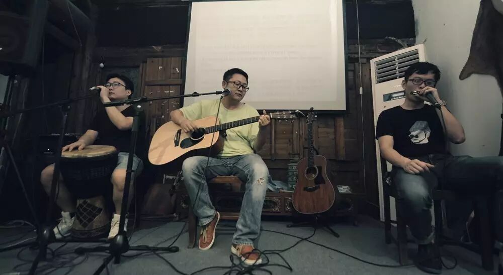 3个人每人5首,各自的歌唱完换下一个,因为来的观众不多,现场很安静,安静地听他们一曲曲的诉说。在这喧嚣的熙攘的快进的生活里,有人说,这是他听过最棒的一个现场。