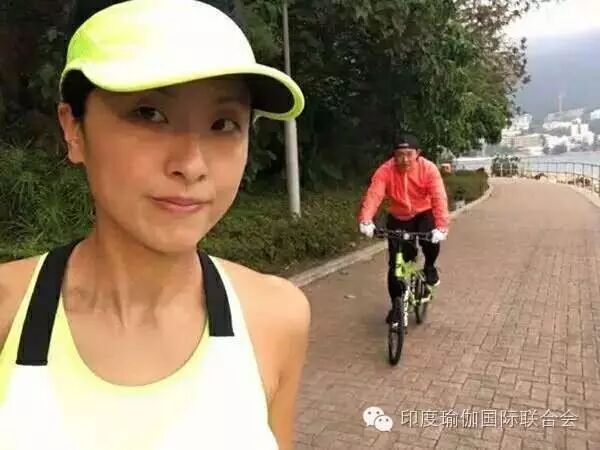 但Eason膝盖曾经受过伤不能跑步,改为单车代步,太太徐濠萦总是刻意放慢步法,陪伴左右。