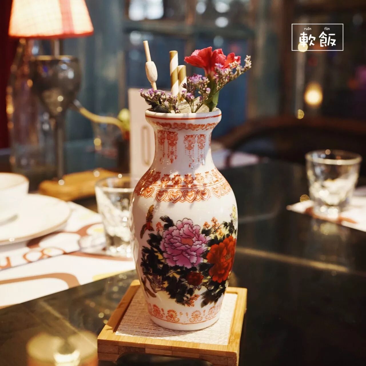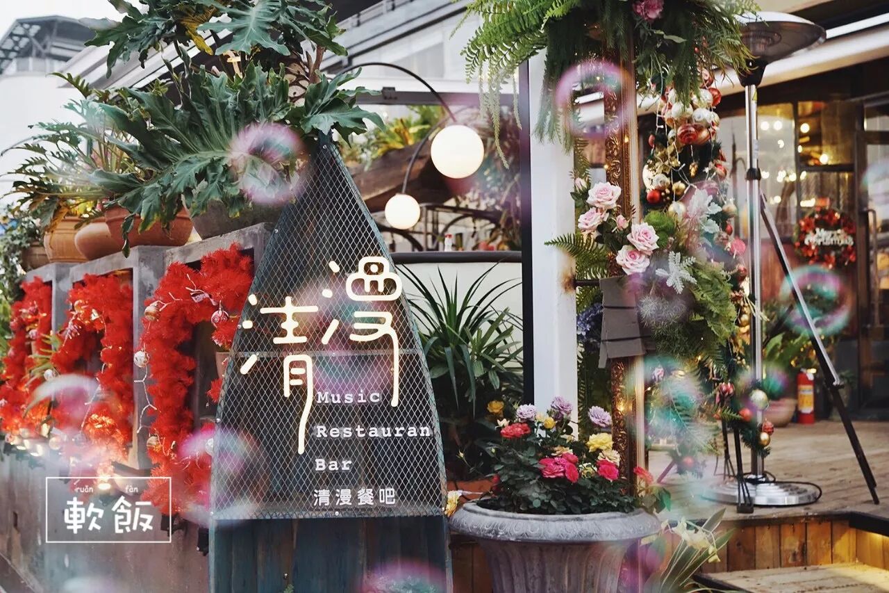 来到餐厅的入口处,映入眼帘的整个画面都充满着浪漫的泰式风情,花园式的外围、拼接木板、簇拥在围栏上的盆栽...当天还飘起了漫天的泡泡,处处洋溢着浪漫的气息。