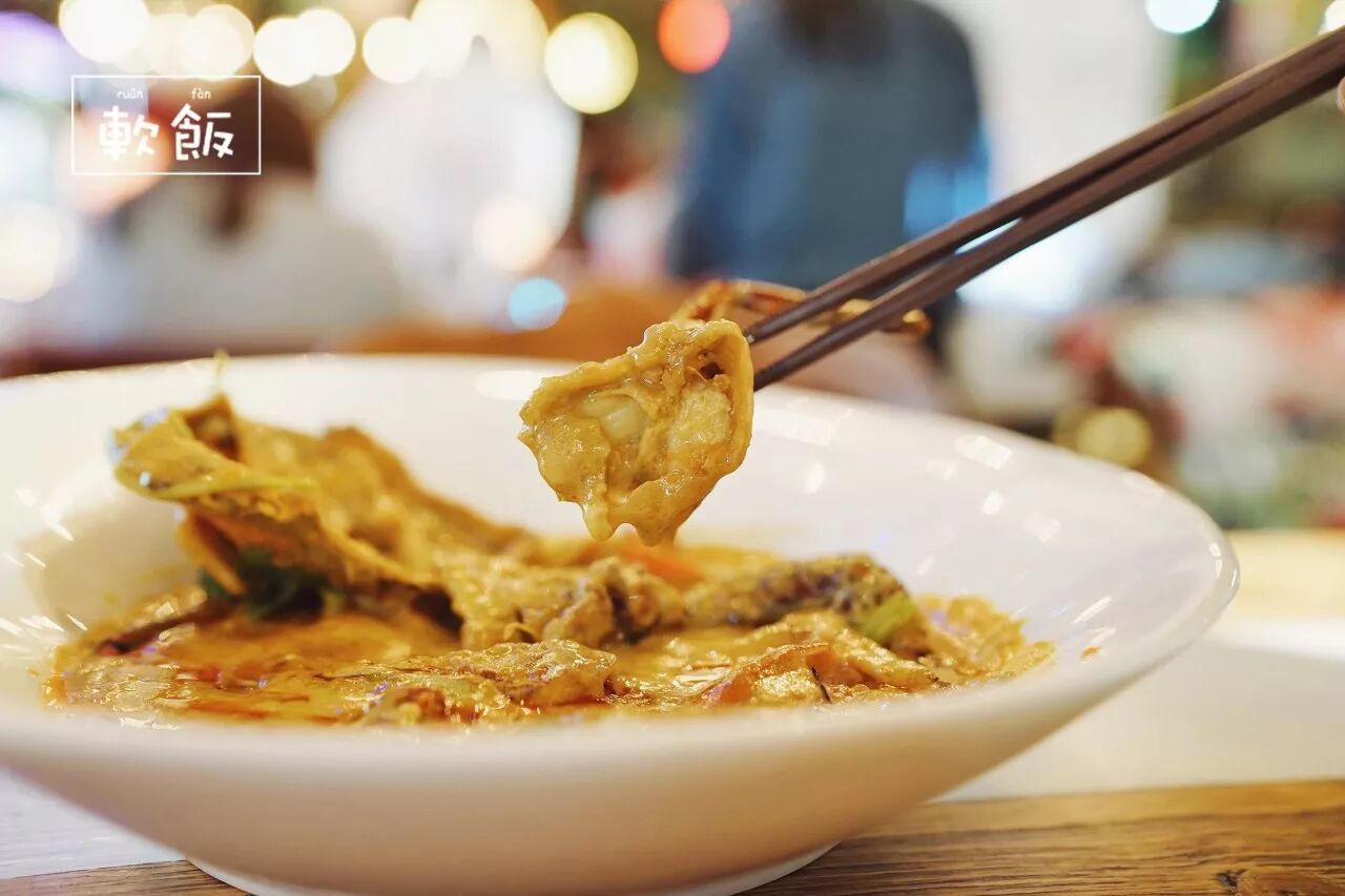 新鲜的蟹浸在用多种特殊香料配制的浓香咖喱汁中烹煮,鲜甜的肉质与浓郁的辛香混合,好不滋味!