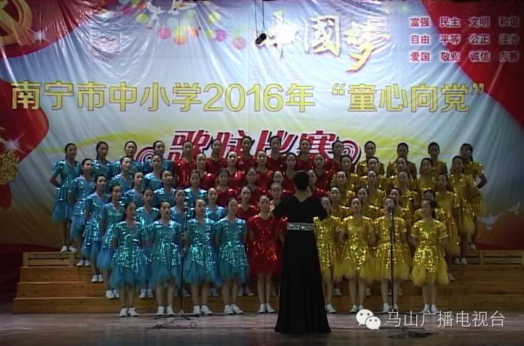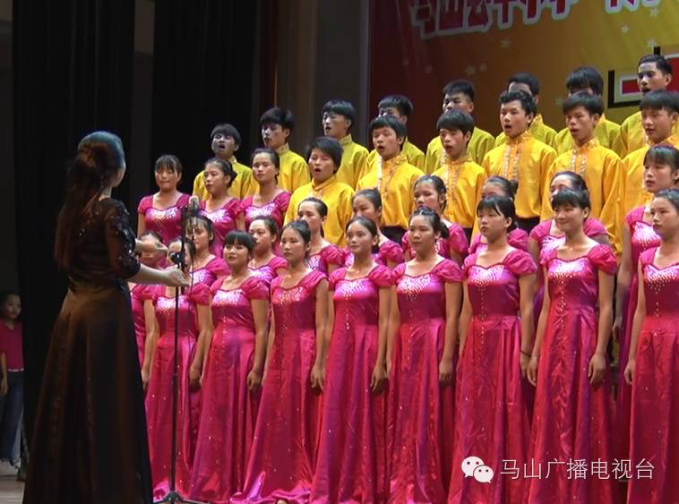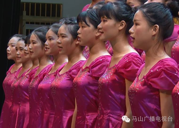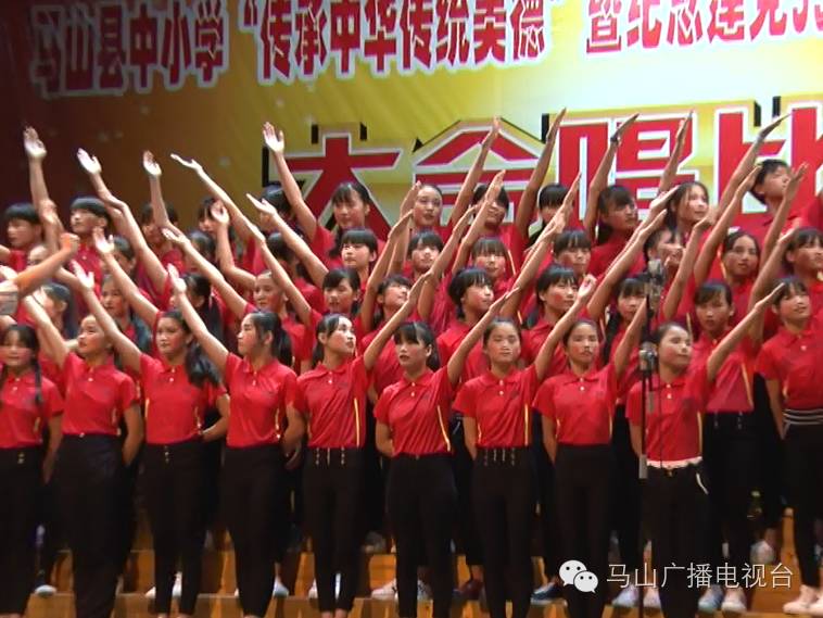 全县21所中学各自组成合唱团,依次上台进行合唱。