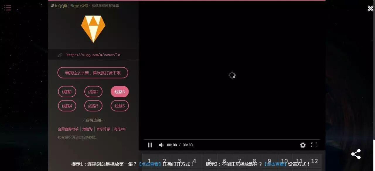 随便测试一部vip电影,可以看到左侧有一个钻石图标的悬浮窗,点击播放即可以观看该电影。