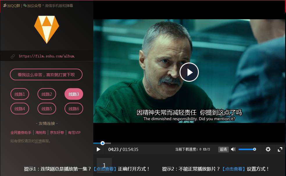 可能是我没耐心,匆匆换了几次线路后还是没能成功播放。不管了,这个留着给大家去试。(成功了可以告诉我噢)下面测试我想看很久的《猜火车》及《猜火车2》。
