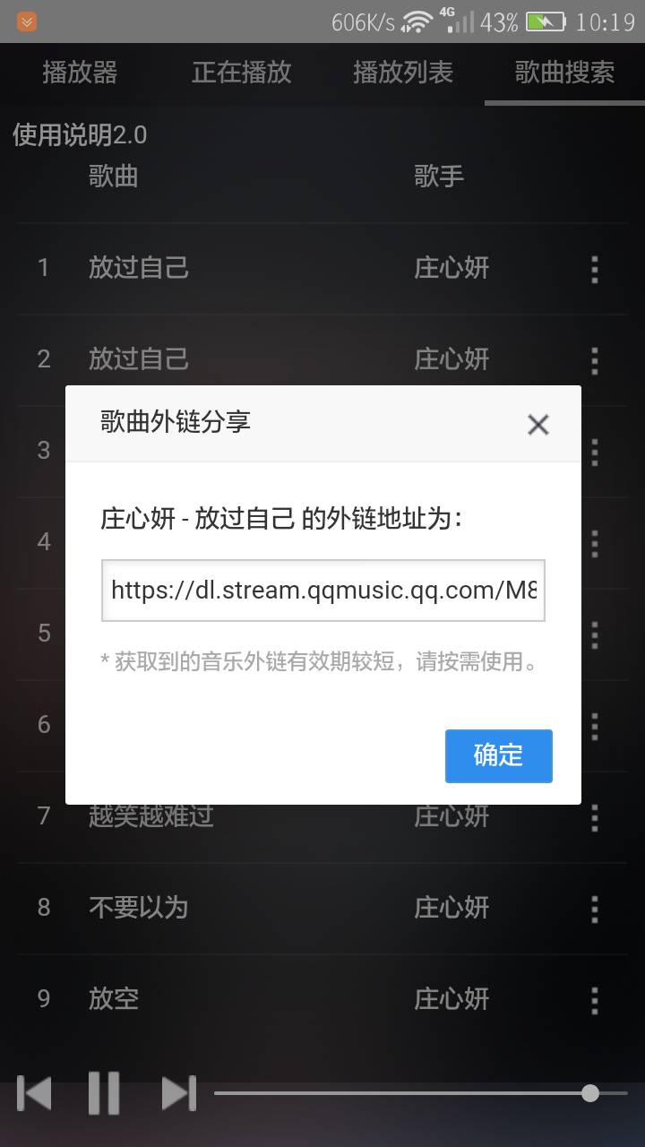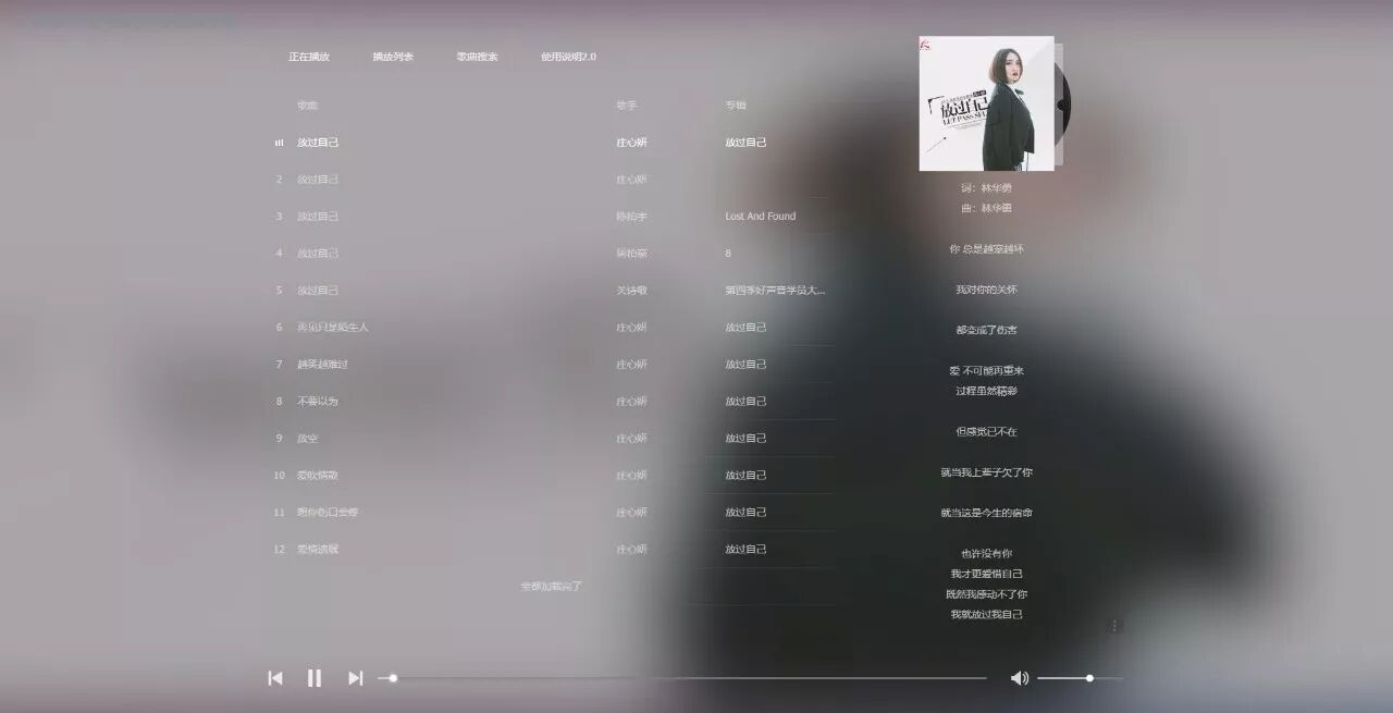 这里我以QQ音乐内的付费歌曲:《放过自己-庄心妍》为例
