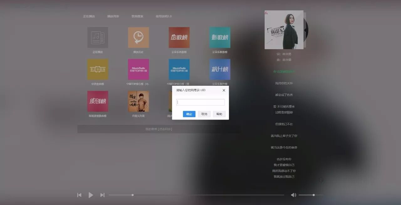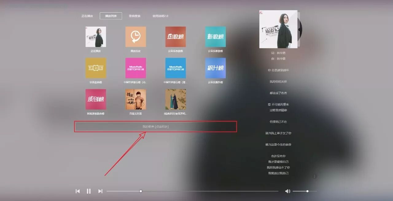 如果想要同步自己的歌单,请点击该页面下方“我的歌单"[点击同步]”按钮