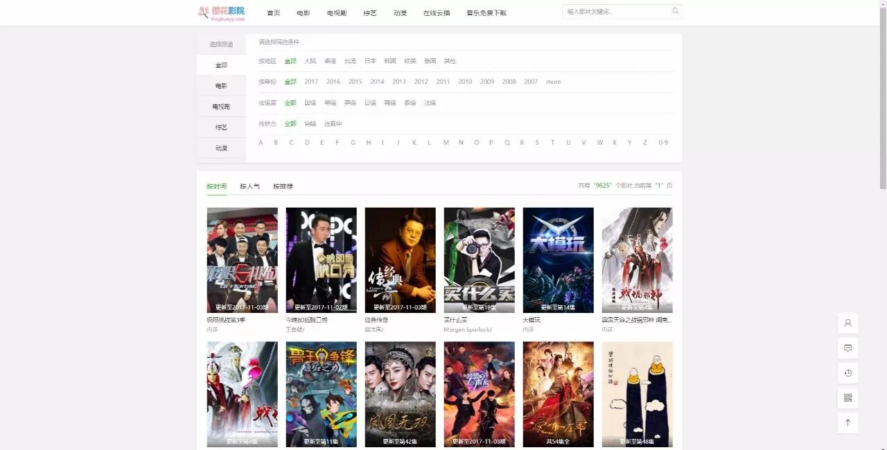 如下是全部影片功能界面,在这里你可以分类查找你想看的影片