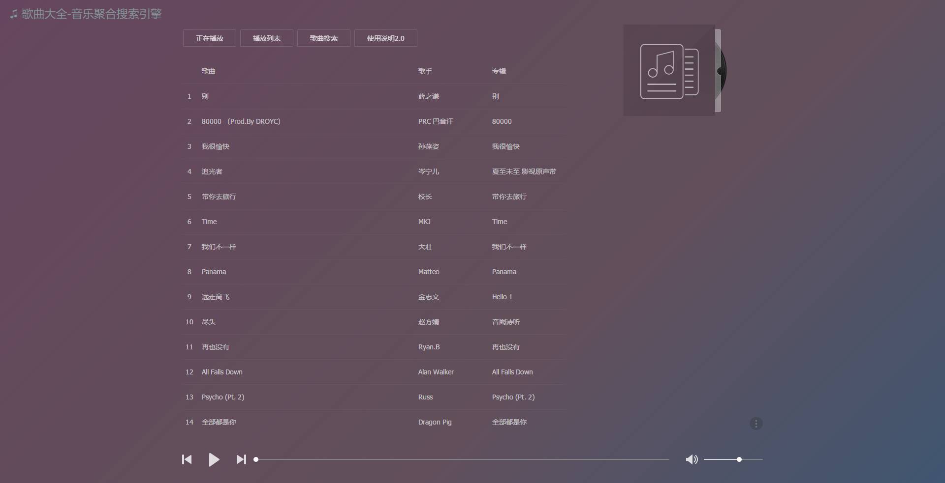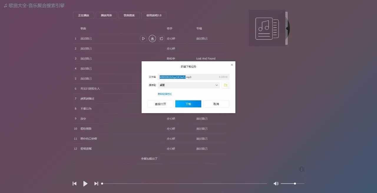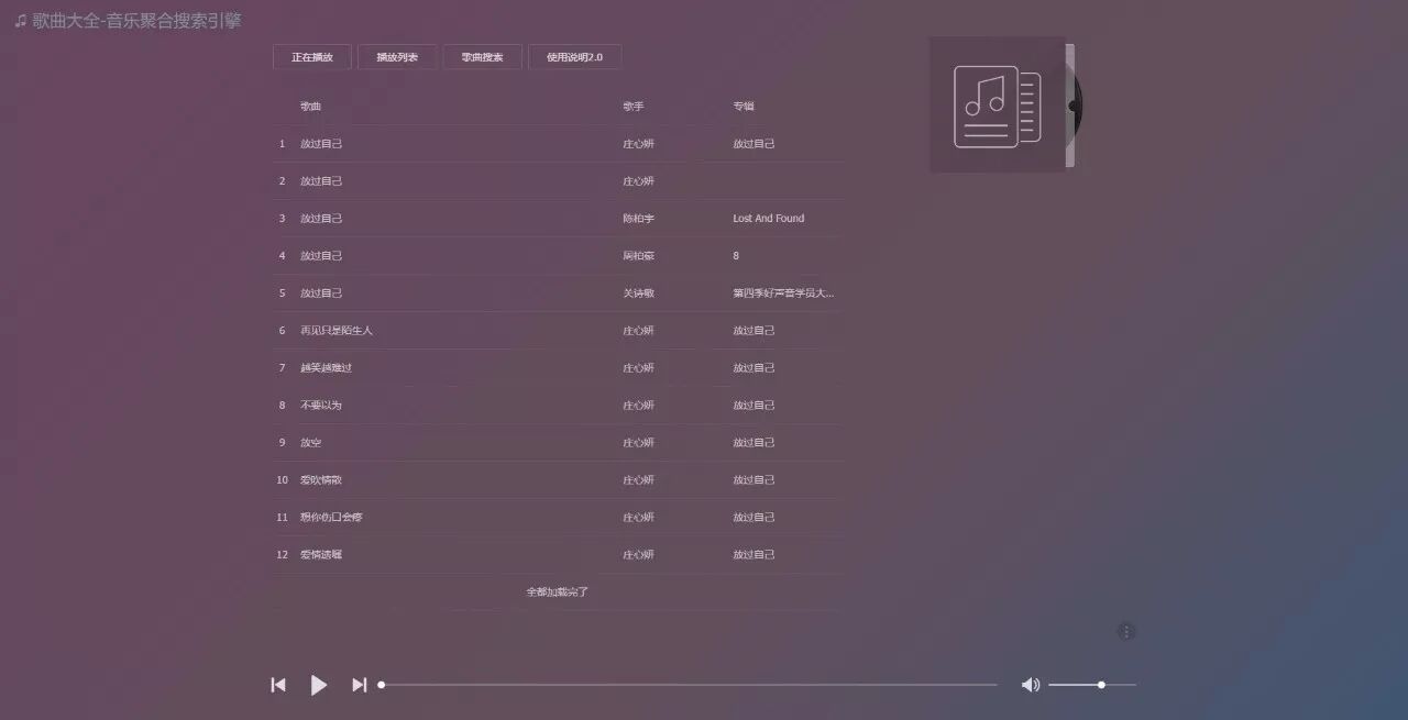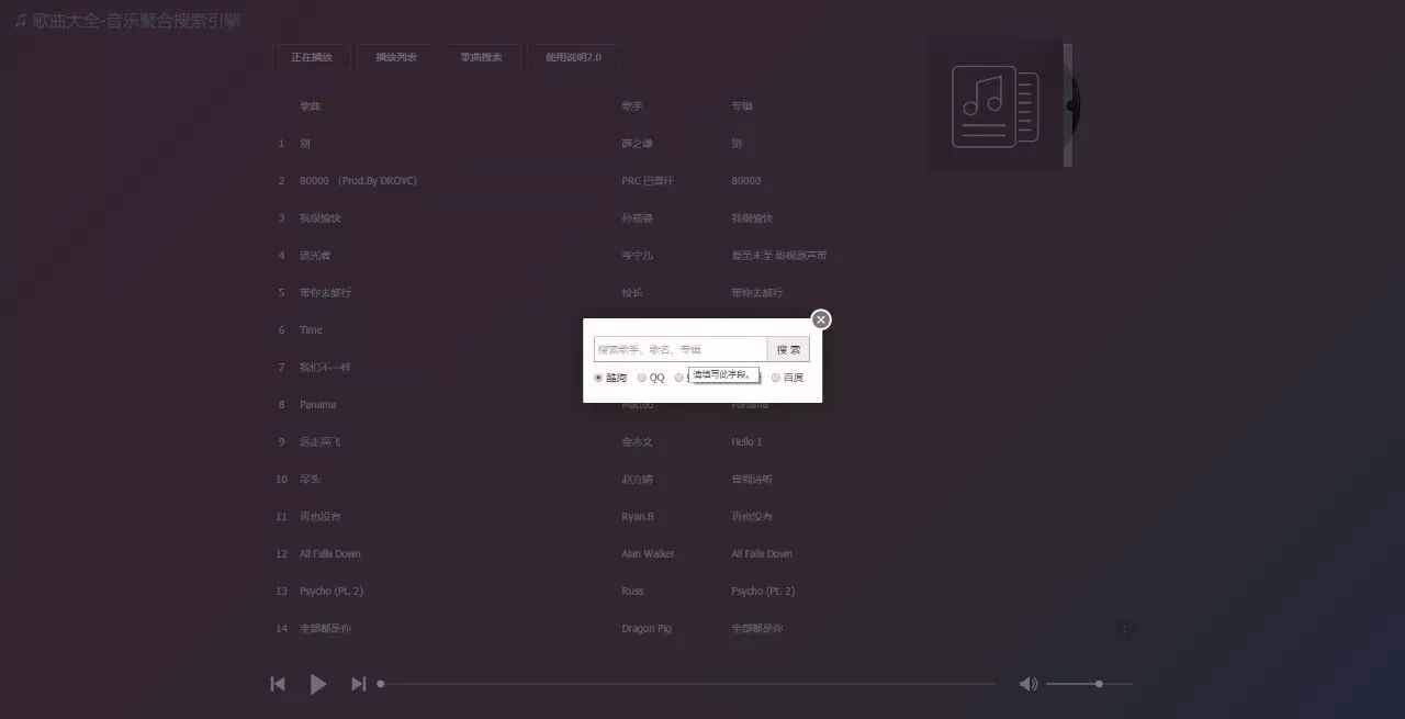 全网歌曲搜索 | 可搜索支持平台内付费歌曲,并提供下载及外链获取,下面为大家演示