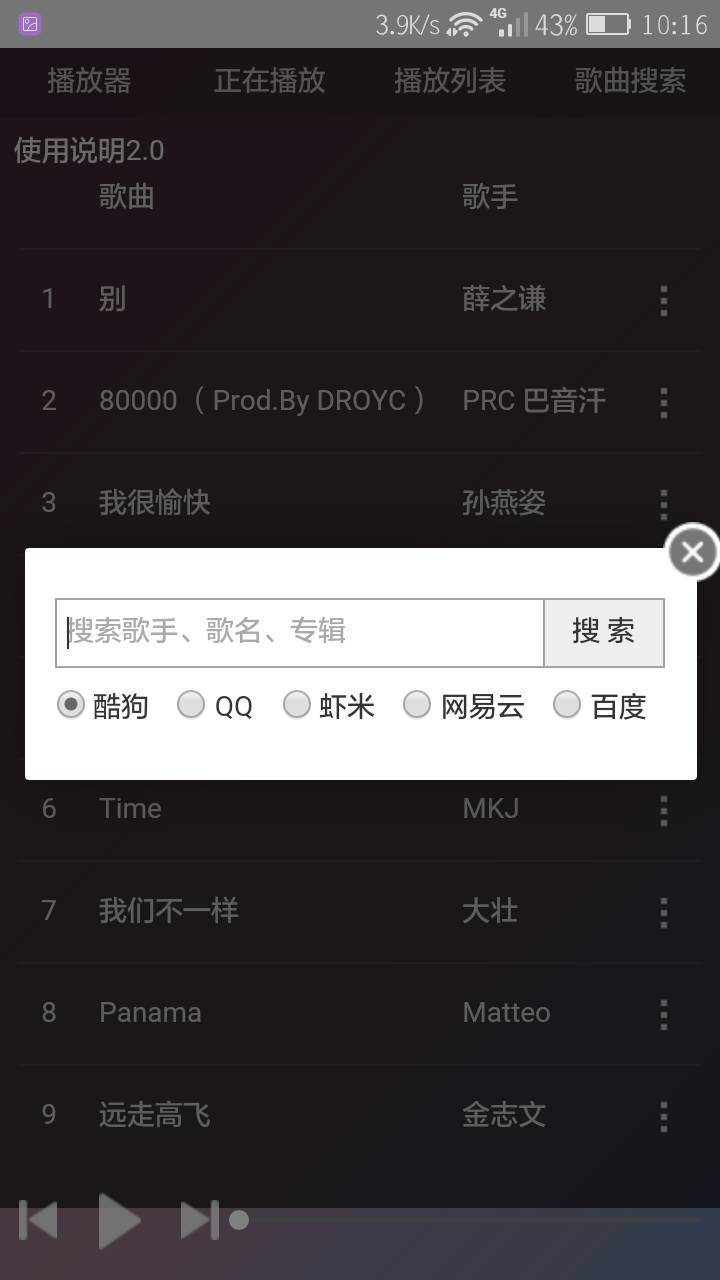 歌曲搜索界面: