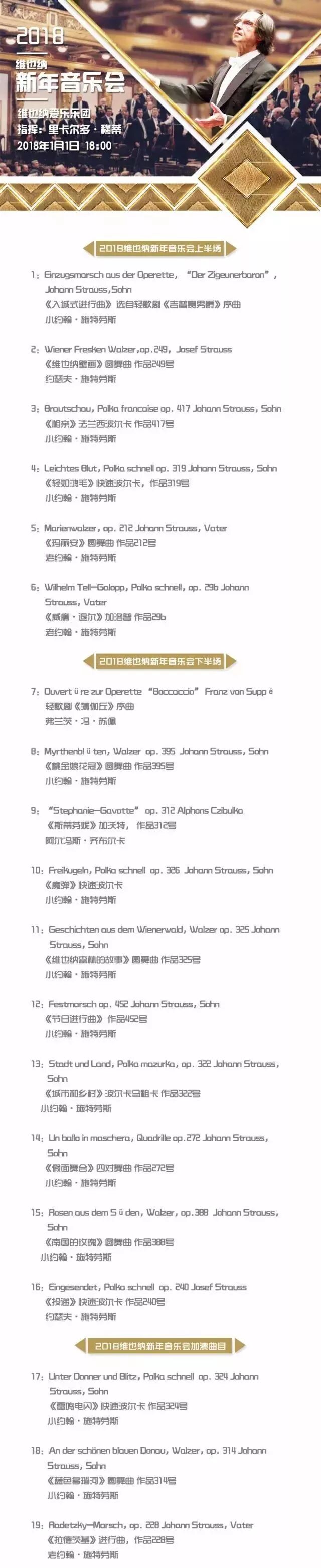 2018年维也纳新年音乐会节目单新鲜出炉,我们第一时间为大家奉上。