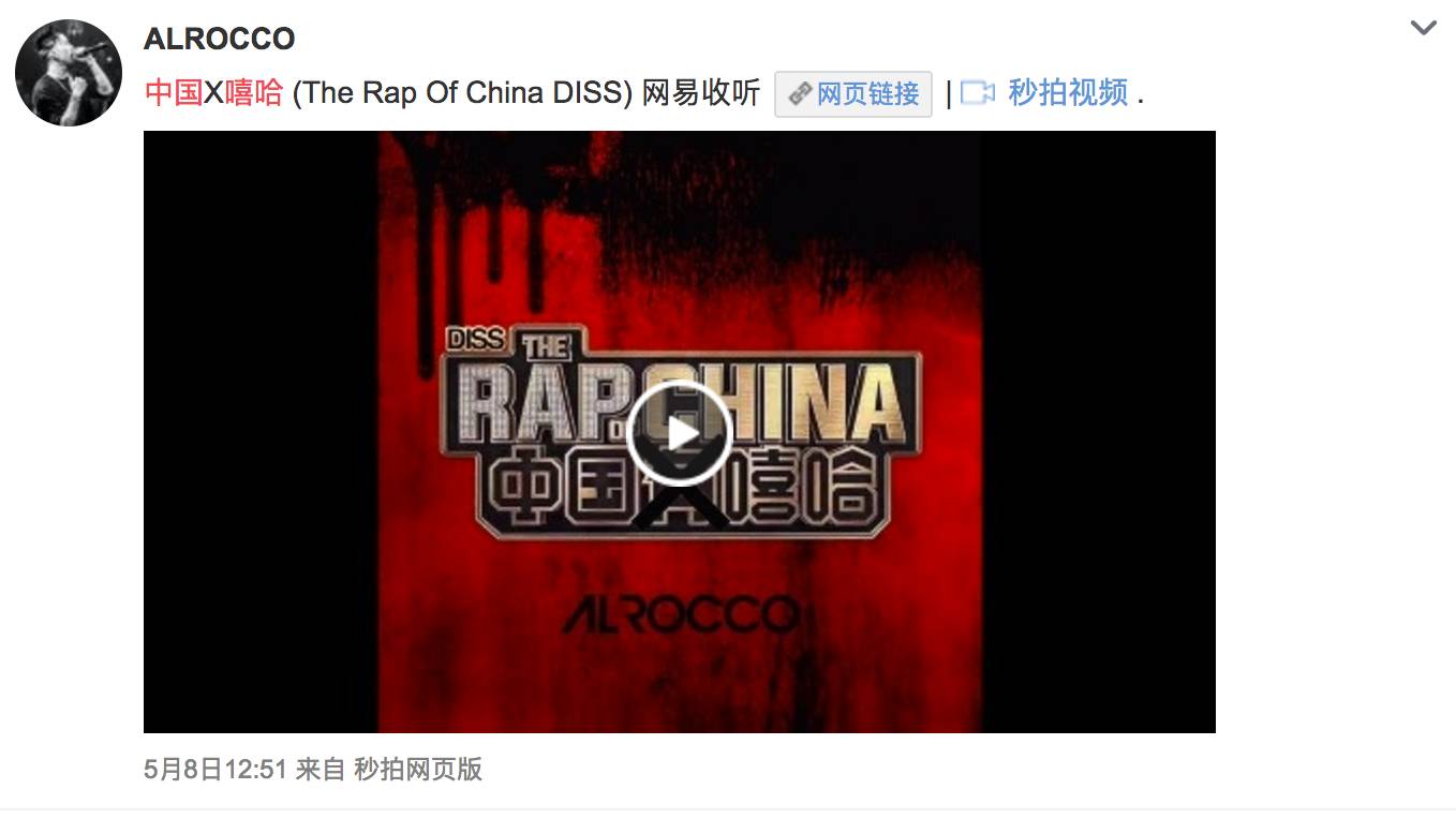被淘汰的圈内著名rapper ALROCCO在海选后出了一首diss曲,已经被播放65万次