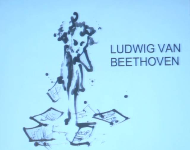 “贝多芬的爆炸头活似他的坏脾气,连钢琴都被他弹得好大力。”