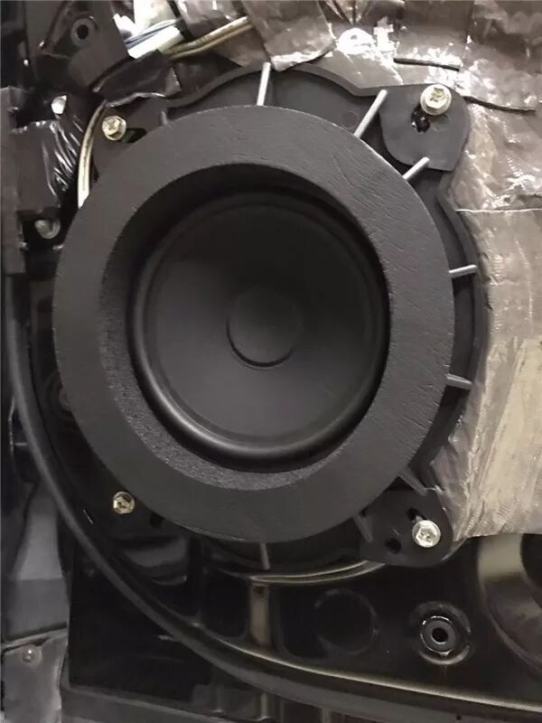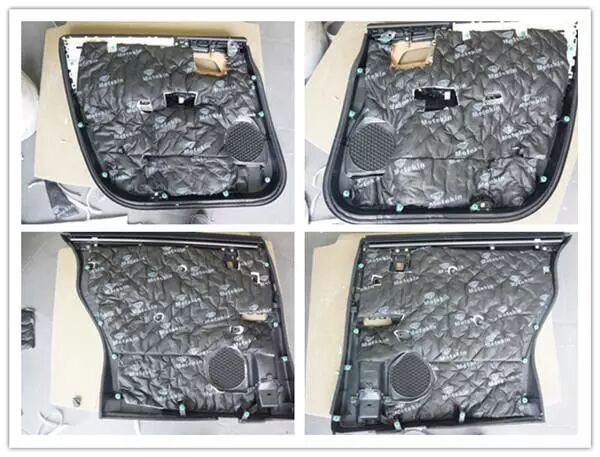 车门外层隔音按原车门形状剪裁,整块满贴,双层隔音安装后,车门形成一个密闭箱体,给中低音喇叭发声创造环境)