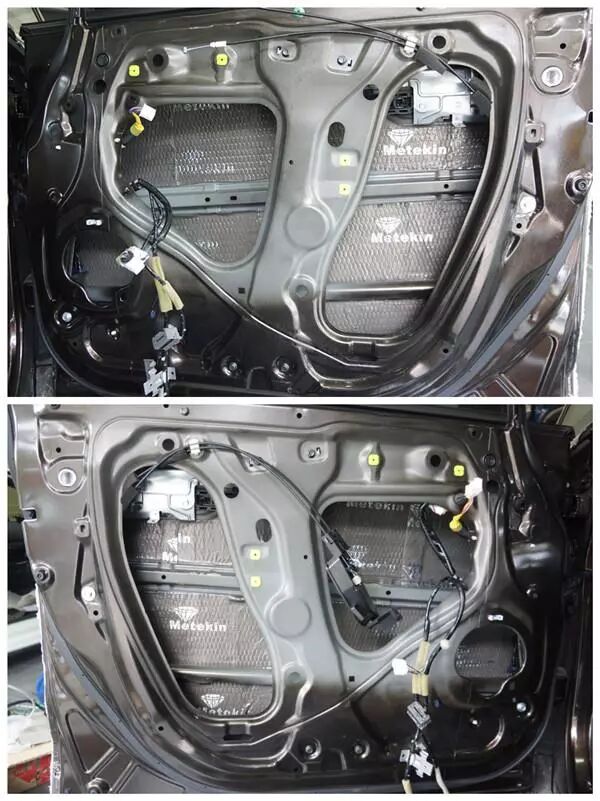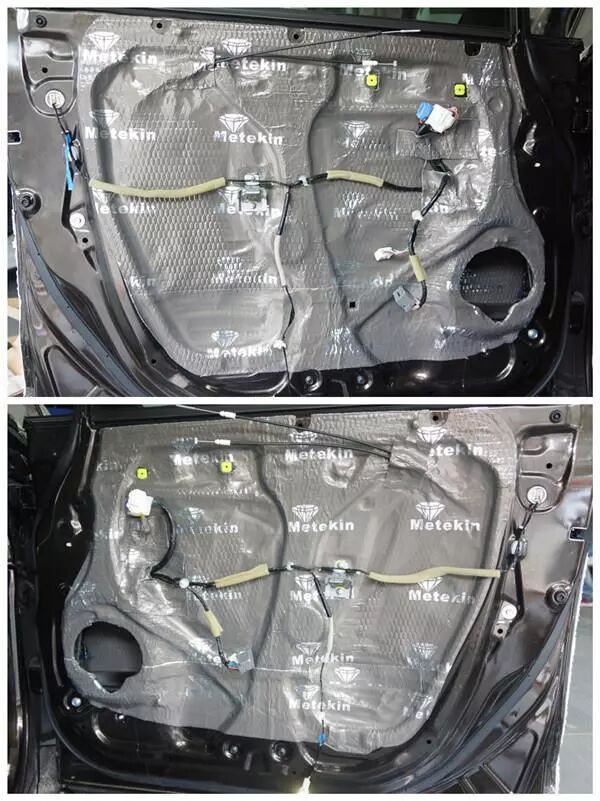 车门内层安装美特静减震板,安装美特静隔音后加固钣金结构,减少共振。