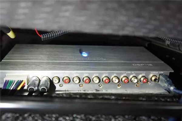 本田艾力绅改装的这套系统中,歌剧世家DSP-i8处理器负责音源的优化,提升整体音响音效。它的体积并不大,放在前排座位底下刚好。这样安装既节省车内的空间,又方便之后的调音工作。