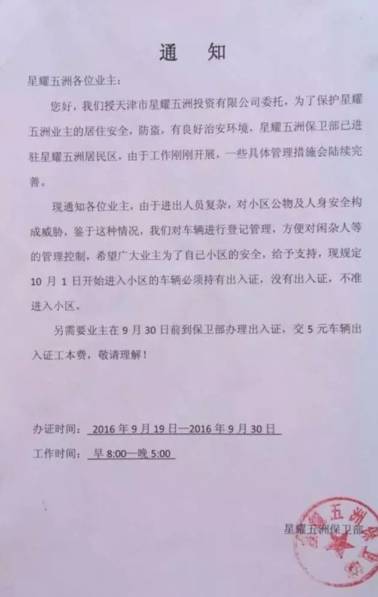 昨天,有一个消息,星耀五洲楼盘的保卫科重返入驻的公告: