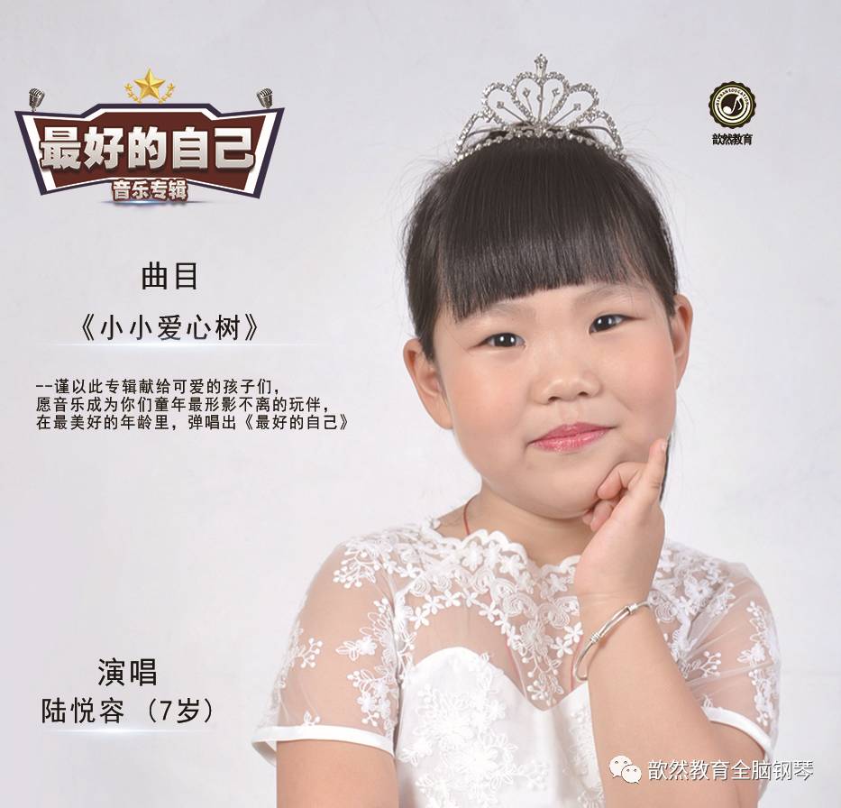 今天,小编带大家来欣赏,陆悦容宝贝的专辑录入曲目《小小爱心树》 。这是一首非常有爱的歌曲,深受广大小朋友们的喜爱。