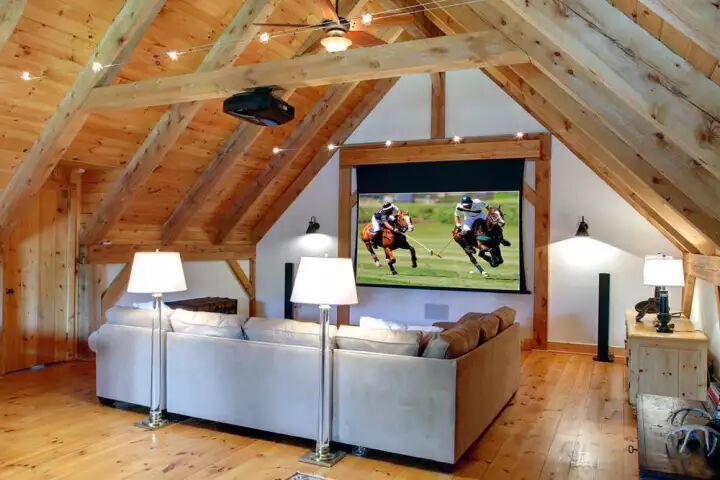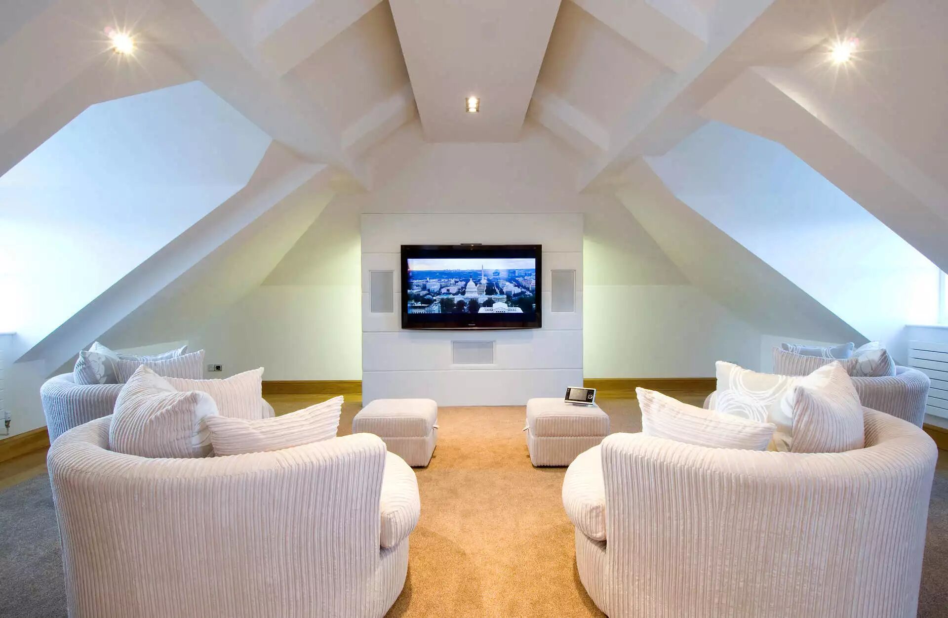 一般来讲,阁楼影院的案例在国内并不常见,但很多小别墅都会有阁楼的存在,所以,如果能把这里的空间有效利用起来,也不失为一件妙事。