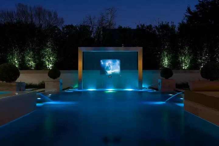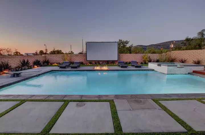 家庭影院不再局限于室内。一些很酷的土豪已经把他们的后院重新改建成私人的户外泳池影院。这些后庭电影院造就了一个很棒的活动场地,在星光的映衬下,人们可以在此欣赏电影或观看球赛。