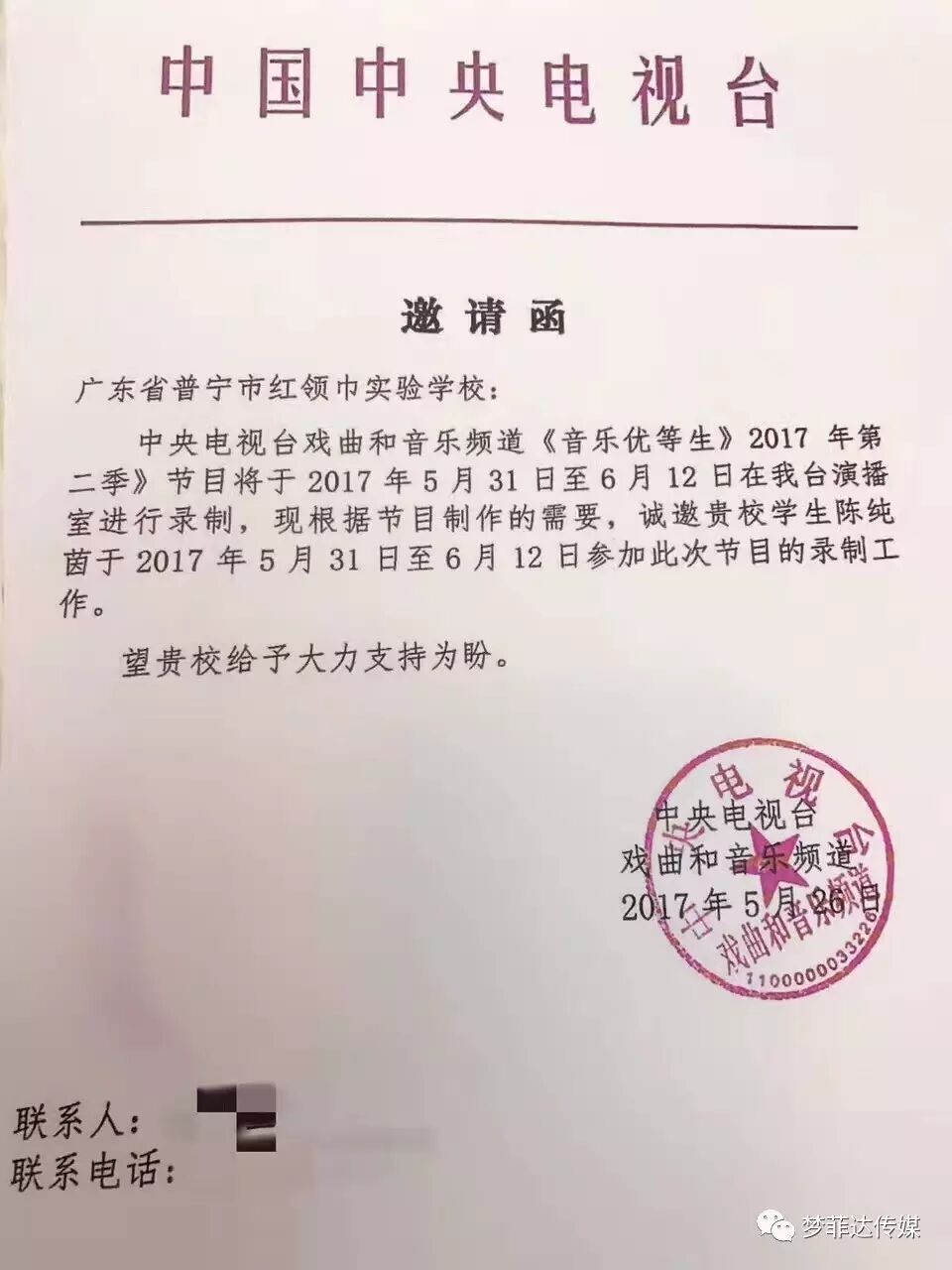 陈纯茵,:2016受邀山西卫视巜童星梦工厂》节目录制:2016受邀中央电视台《开门大吉》节目录制:2016受邀中央电视台《乐童嘉年华》节目录制:2017受邀山西卫视《又见东方红》节目录制:2017受邀中央电视台音乐频道《音乐优等生》节目录制