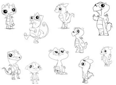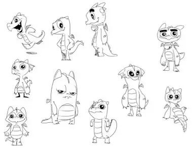 以小神龙为例,开始时创作团队对小神龙身世背景、性格、超能力进行多次头脑风暴,定下人物设定框架。角色设计师也会对小神龙的外型有很多想像,并把小神龙外型的各种可能型画出来。最后,会在众多的外型中挑出最终的小神龙。