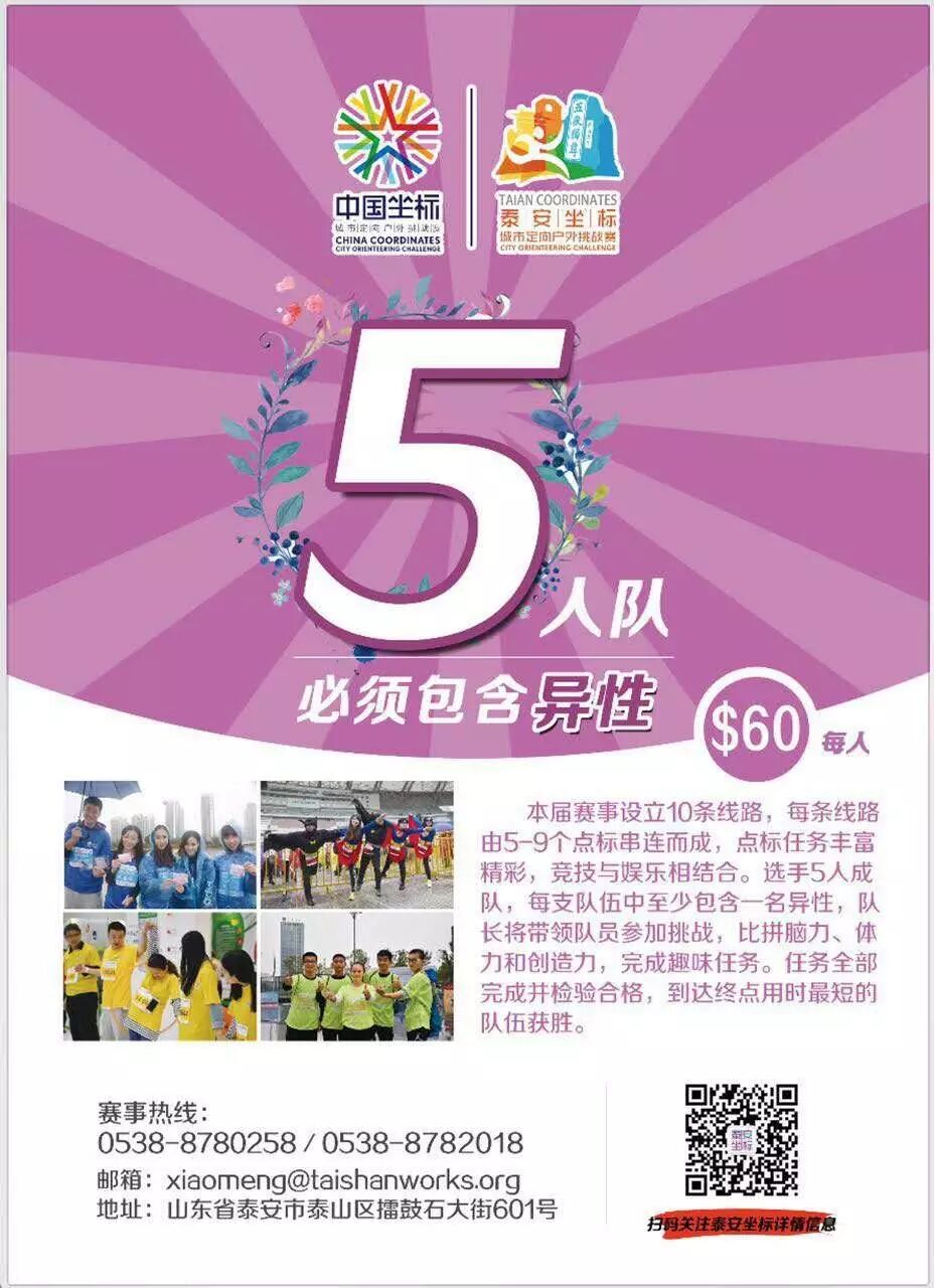 中国坐标•泰安城市定向户外挑战赛是一项:“以城市为赛场,以公共交通为赛道,以团队为参赛形式,以到达目标点标、完成指定任务为竞赛规则”的全民城市户外嘉年华类赛事。上海已成功举办过六届,今年超过10万人报名,通过抽签2万名选手有幸参赛。它创新的赛事理念和游戏规则,集休闲娱乐、团队合作与体育竞技于一体的特点,使它成为一个融合城市各种文化元素的平台。