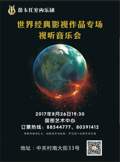 国图艺术中心将于8月26日19:30 举办《经典影视作品视听音乐会》,不管您是电影粉丝还是音乐发烧友,这都是一场不容错过的视听盛宴。《泰坦尼克号》、《海上钢琴师》、《加勒比海盗》、《美女与野兽》等经典影视金曲将呈现在您的面前,让您充分享受夏日里音乐带来的一丝清凉。