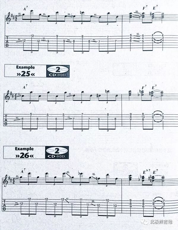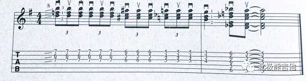 把六度音程换成其他音程,比如上图Example25里把低音全部降2品,就变成5度音程回转。(你要自己体会不同音程的感觉有什么区别)