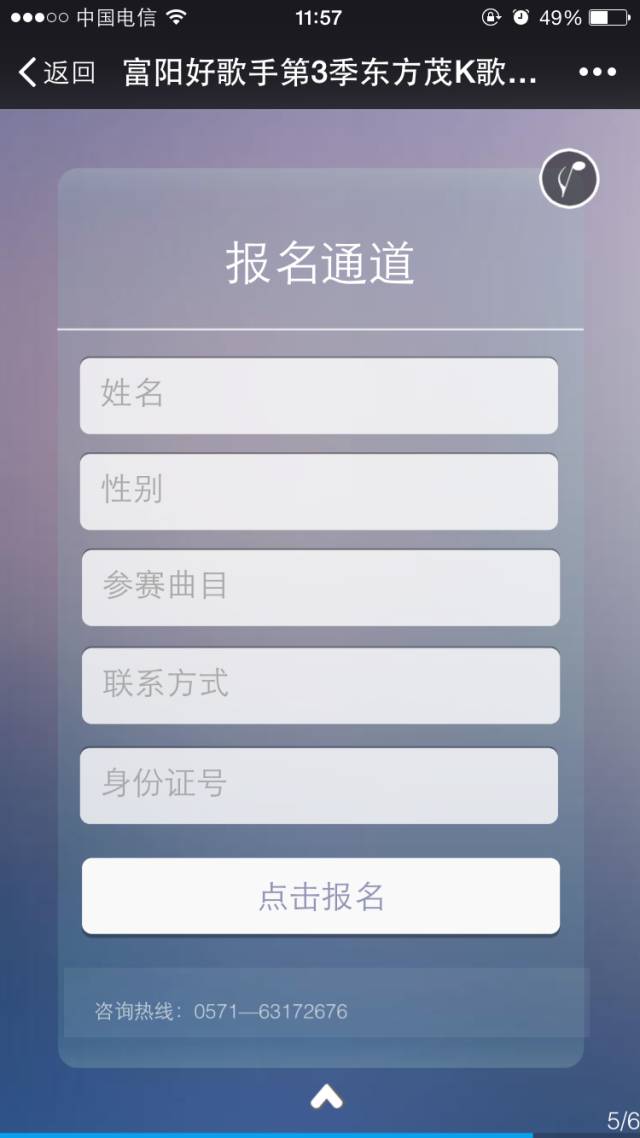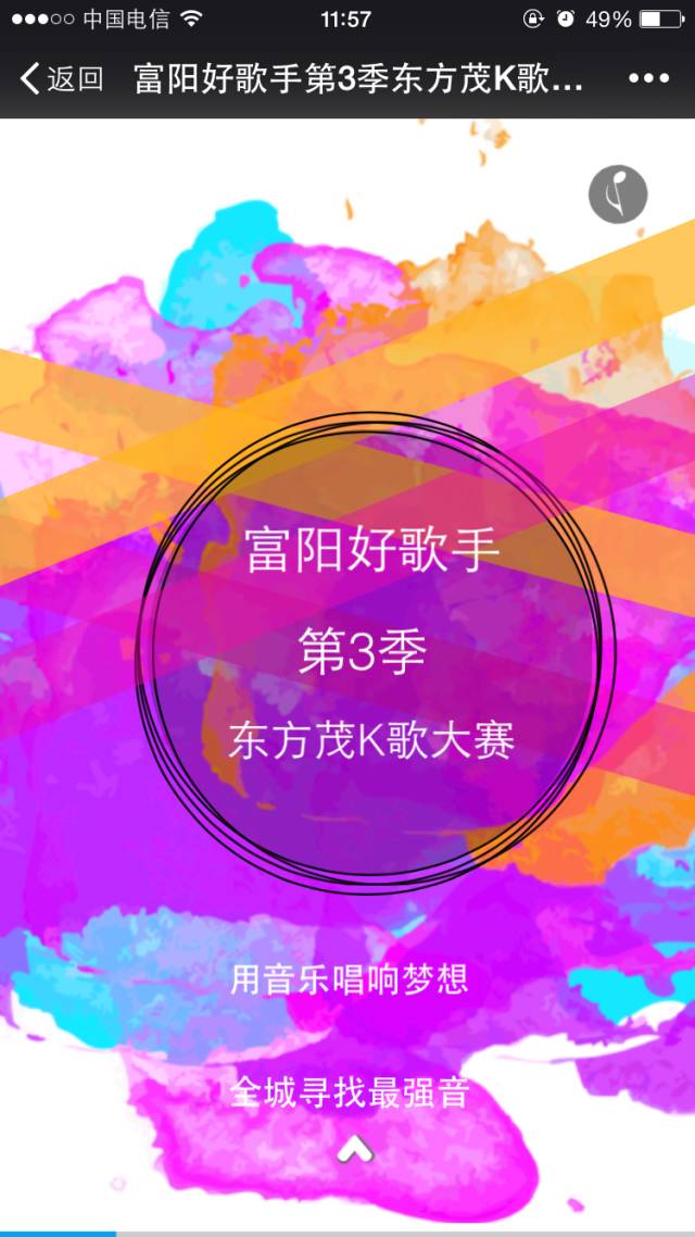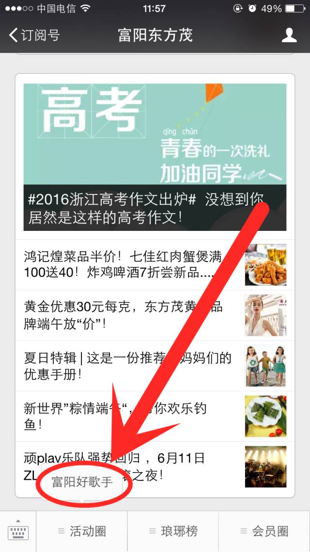 第一步:点击微信平台菜单栏“富阳好歌手”