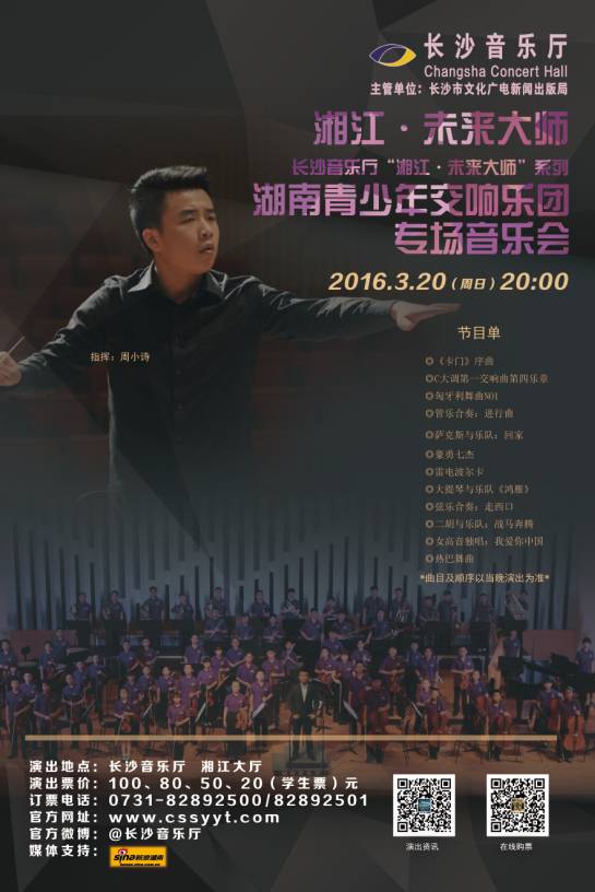 演出名称:长沙音乐厅“湘江·未来大师”系列之湖南青少年交响乐团专场音乐会