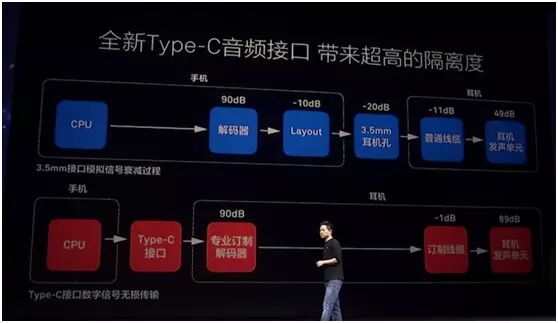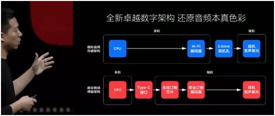从此刻起手机音乐行业进入全程数字无损时代,而3.5mm模拟音频时代已经存在了30年。此外乐视也宣布将与汪峰耳机——fiil进行合作,为全数字音频时代助力,那么全程数字无损是个什么概念呢?在发布会上贾跃亭是这样解释的。