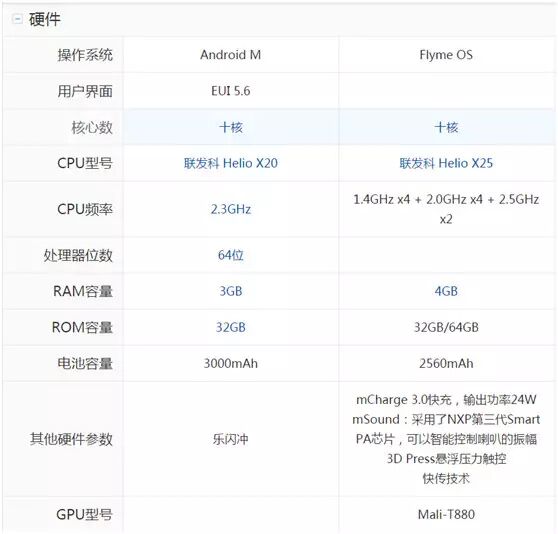 左乐2右魅族pro 6,我们从参数上依次对比下