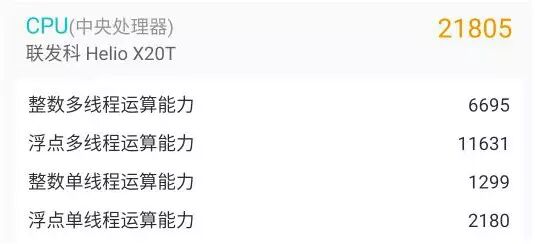 跑分显示,HelioX20的单线程成绩为1299,与骁龙820和三星Exynos8890有些差距,不过多线程成绩却达到6695,完成了对后两者的超越,运算实力不俗。功耗上较前一代HelioX10还减少了20%,坚固了能耗平衡。在存储方面乐视搭配3GB内存+32GB闪存,特别说明下乐视此次闪存采用eMMC5.1规格,较前一代eMMC5.0性能提升50%,理论带宽为600MB/s左右,由此乐视打造了标配双3时代,只为你畅快的运行体验。对于极致追求的发烧友来说这颗核心值得你拥有。