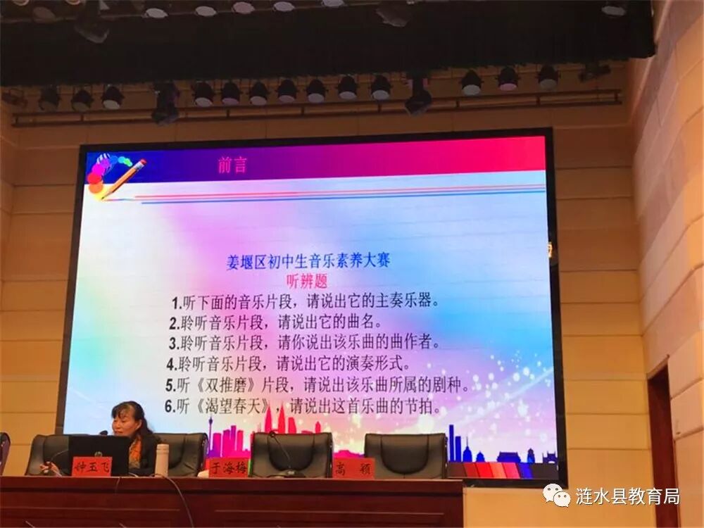 为了进一步推动我县初中音乐学科课堂教学改革,提升音乐教师课堂教学水平,更好地迎接淮安市2018年人机对话形式的音乐中考,12月11日,2017年涟水县初中音乐高效教学观摩暨中考研讨会在该县淮文外国语学校举行。来自全县各初中校50多名音乐老师参加了研讨会。