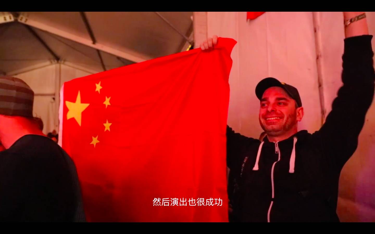 旋转保龄演出现场 有外国乐迷在台下举起中国国旗