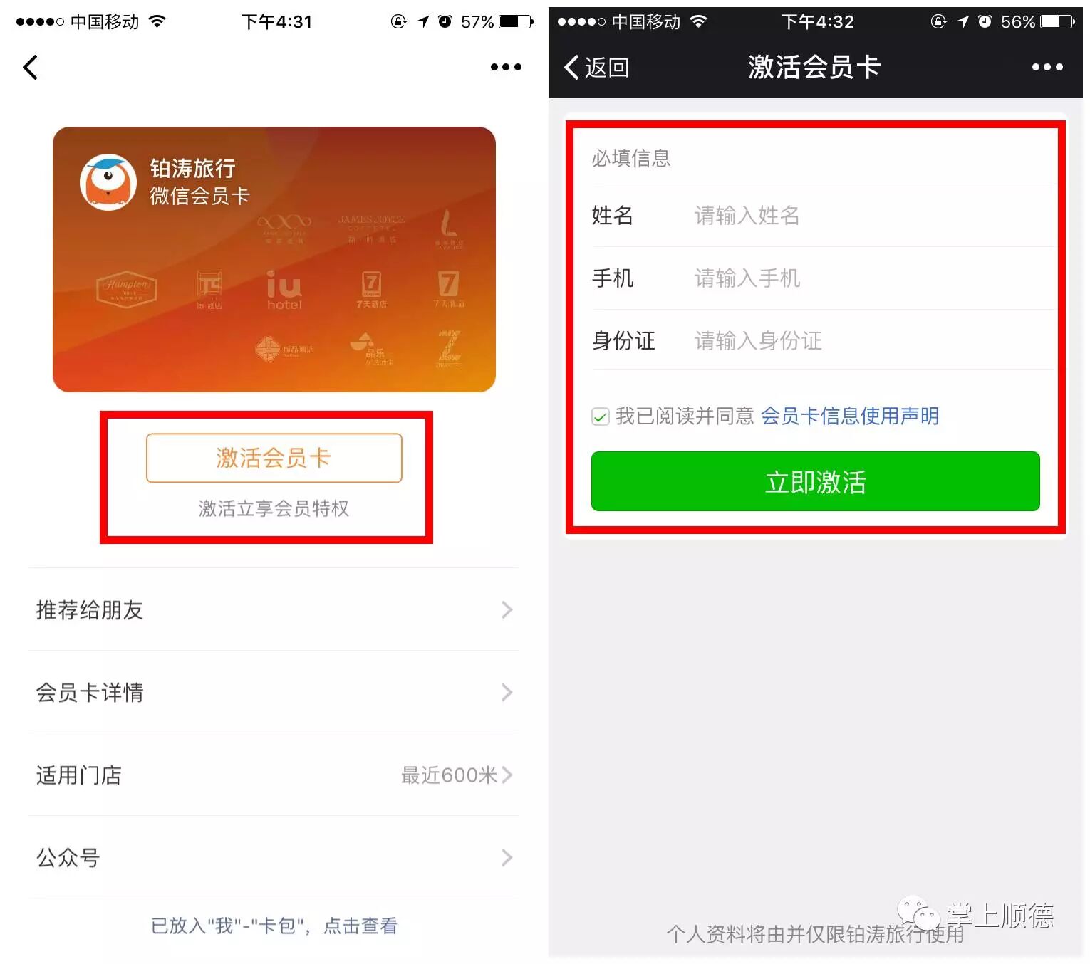 届时凭铂涛旅行微信会员卡入场