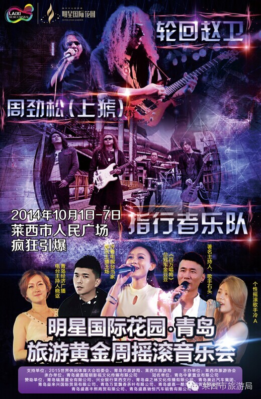 这是一个不同于一般音乐会的音乐会 这个十月的莱西 会有寻找消失记忆的60后们 会有相聚欢呼的70后们 会有将与青春再见的80后们 会有享受年轻的90后们 更会有茁壮成长的00后们…… 生命就是一场狂欢 再不疯狂我们就老了 当国庆黄金周遇上摇滚音乐会 让青春肆意奔放 让您嗨翻天 |