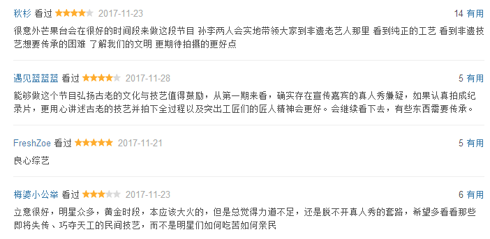 比较下,湖南卫视未播出的《最炫中国风》和已播出的《百心百匠》不难看出,两者同为文化类综艺节目,不同的是前者为传统和潮流的结合,重在当红明星对于传统文化的学习,而后者则重在传统的结合,两者相权,似乎后者更具有操作性,也更符合纯文化类综艺的趋势,自然成了优选。