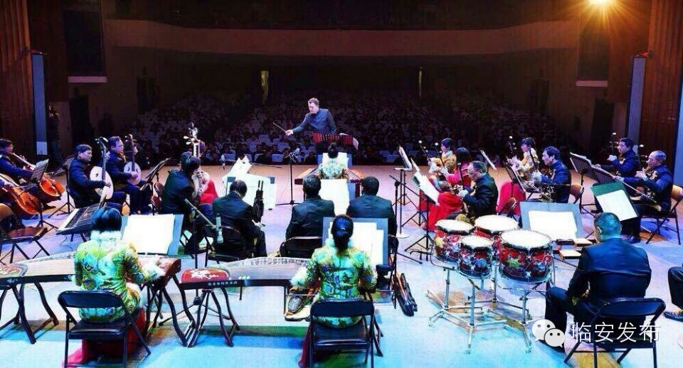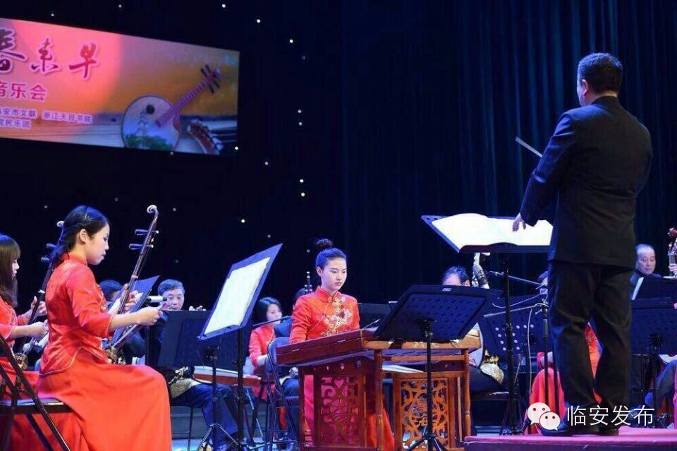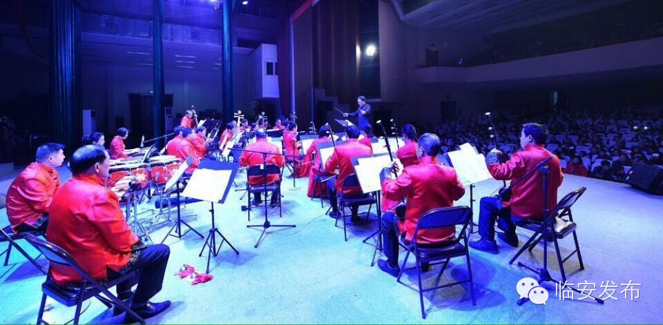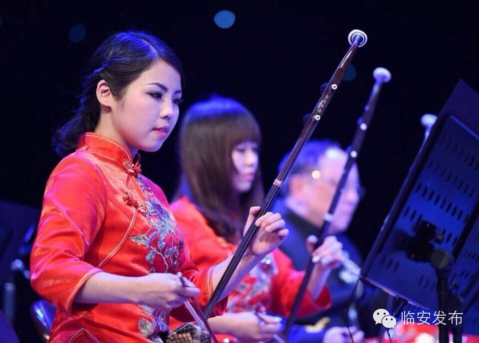 钱王故里春来早——2015年临安市迎春音乐会7日晚上在临安剧院举行,浙江天目书院民乐团的表演者演奏了一首首美妙的乐曲。